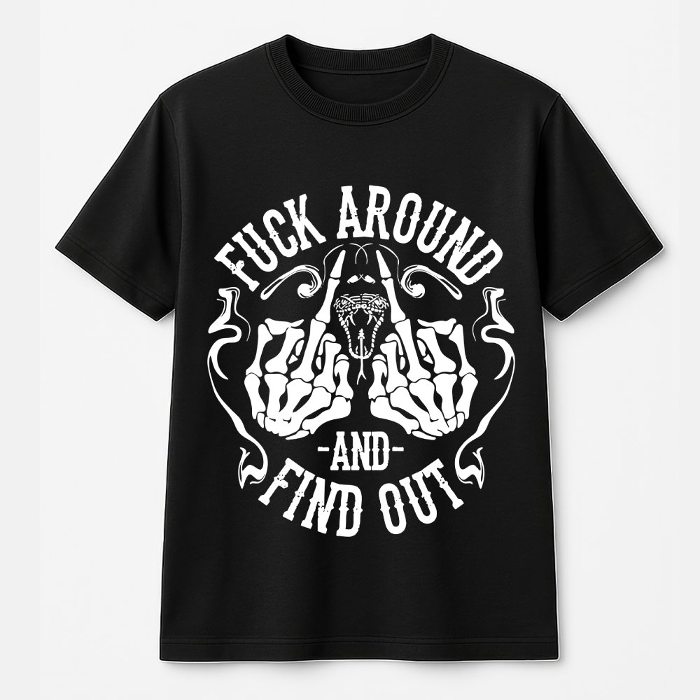 Fuck Around -And- Find Outs With Skeleton Middle Fingers And Snake T-Shirt